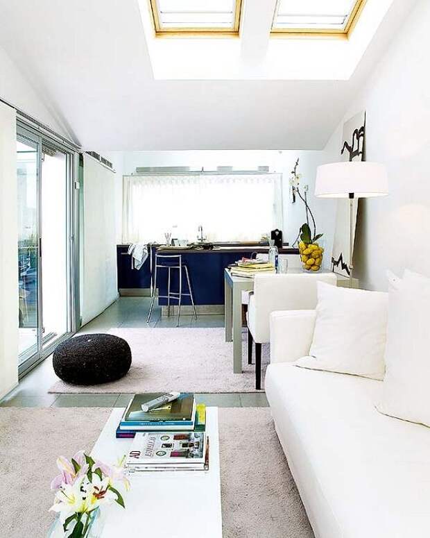 Прекрасное оформление небольшой комнаты под крышей дома, то что может стать отличным вариантом для минимизирования пространства.