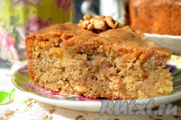 Необыкновенно вкусный, нежный яблочный пирог с орехами из Британской колумбии готов. Нарезаем его на кусочки и угощаемся прекрасной выпечкой.