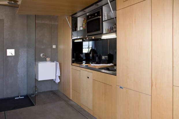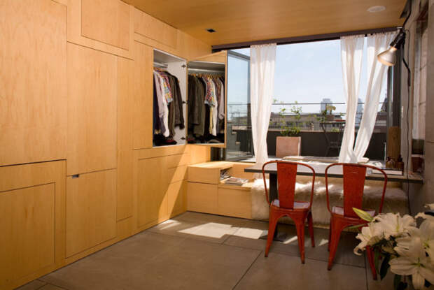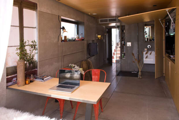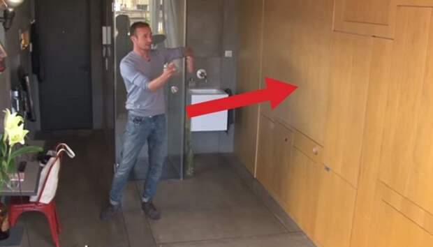 В этой квартире-трансформере даже туалет спрятан за одной из панелей, поэтому гостям придется изрядно потрудиться, чтобы найти нужную дверцу.