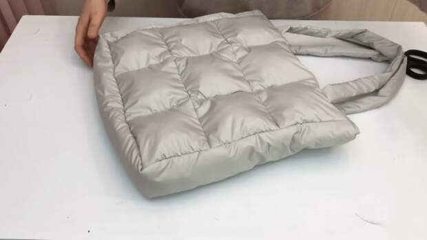 По форме сумка может быть любой. Главная фишка заключается в наличии отсеков с набивкой. В нашем случае для сумки выбрана квадратная форма. Для пошива используются: плащевка, подкладочная ткань и синтепон в приблизительно равных количествах, а также искусственный пух или другой наполнитель для набивки выпуклых фрагментов. Рассмотрим пошив на примере квадратной сумки, каждая из сторон которой разделена на 9 маленьких квадратов.