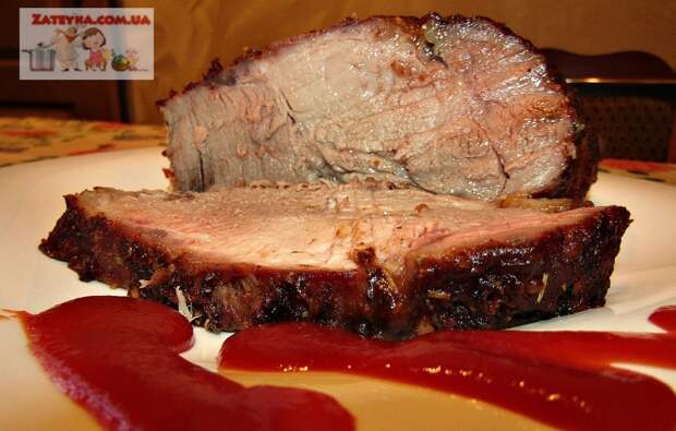 Подготовить все ингредиенты. Мясо помыть и обсушить и приготовить маринад. Для этого в глубокой миске смешать соевый соус, кетчуп, горчицу, соль, сахар и черный молотый перец. На мелкой терке потереть чеснок или пропустить его через пресс и добавить к маринаду. Добавить столовую ложку французских или итальянских трав, которые прекрасно сочетаются с соевым соусом, и хорошо размешать до однородного состояния. Мясо опустить в маринад, хорошо натереть его маринадом со всех сторон, укрыть пищевой пленкой и отправить мариноваться в холодильник на 3 часа. Маринованное мясо поместить в форму для выпечки, сверху вылить весь оставшийся маринад и накрыть фольгой. Отправить форму в предварительно разогретую до 180 градусов духовку на 1 час. Через час снимаем фольгу, увеличиваем температуру до 200 градусов и запекаем еще 15 – 20 минут до зарумянивания. Готовое мясо остужаем в форме, нарезаем порционными кусками и подаем к столу.