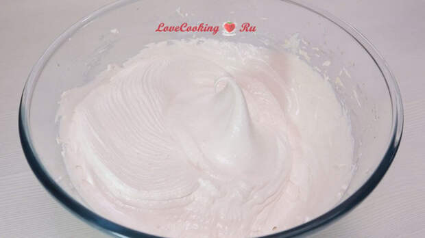 Масса начнёт увеличиваться в объёме. Взбиваем до тягучей консистенции. У меня на это уходит около 2 минут.