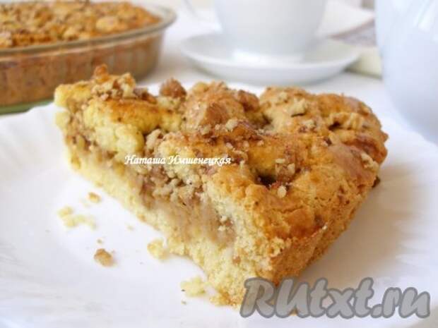 Песочный пирог с яблоками и орехами очень вкусный, не приторно сладкий, с приятной хрустящей ореховой начинкой. Рекомендую приготовить его для домашнего чаепития.