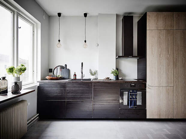 Столешницы с эффектом «дерева» (обычные дуб и сосна либо экзотические палисандр и эбен) подойдут не только скандинавской кухне. Такие столешницы популярны в стиле кантри, шале, азиатском минимализме. Они всегда прекрасно смотрятся со светлым, белым или деревянным гарнитуром. А одна из самых главных тенденций — комбинация черного гарнитура со столешницей насыщенного оттенка с имитацией ценных пород дерева (палисандр, венге, эбен и т.п.).