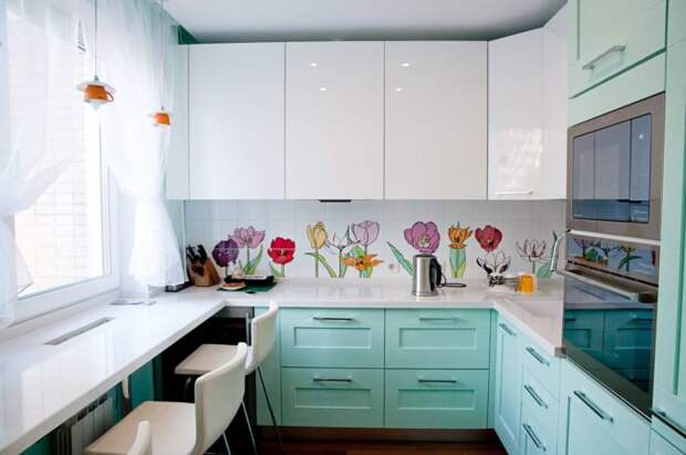 Стекло для кухонного фартука является даже более экономичным решением, чем многие типы плитки и керамогранита. Вы можете просто покрасить стену в один из модных оттенков, а затем добавить сам фартук. За ним могут быть и фото-обои: под кирпич, мрамор, натуральный камень, с любым орнаментом, рисунком или фотографией. В специальных салонах вы можете выбрать один из тысяч вариантов. Либо просто поклеить понравившиеся обои и закрыть их стеклом!